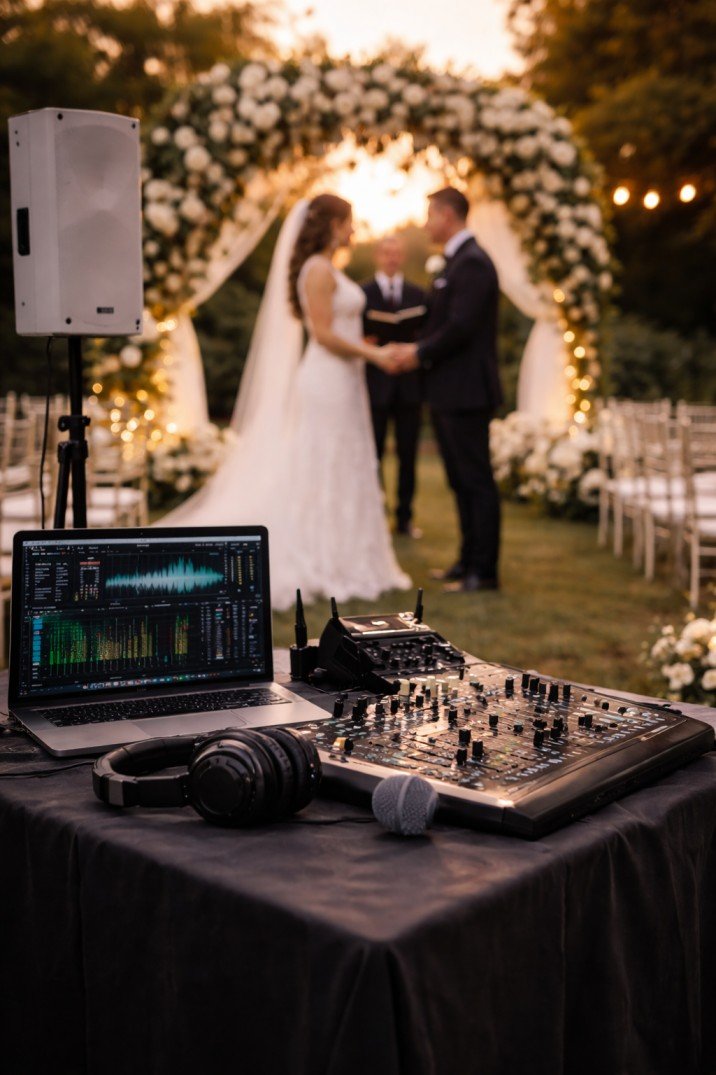 Pro DJ Express provides professional ceremony audio with discreet wireless microphones, premium speakers, and expert sound control tailored to your venue. Whether you’re exchanging vows in a garden, beachfront setting, grand ballroom, or intimate chapel, we carefully balance the sound so every guest feels connected to the moment.