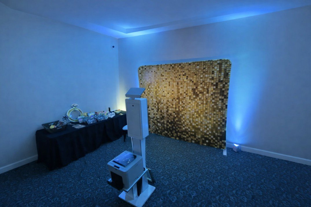 Highlighting the photo booth area with some flare with our uplights can add some excitement to the room and add extra attention to the Photo Booth.