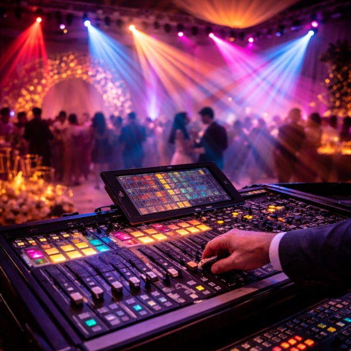 Our professional moving-head fixtures, pattern projections, and synchronized lighting effects create depth, movement, and visual energy that keeps guests engaged all night long.