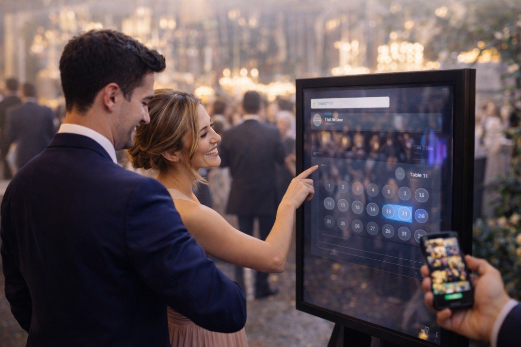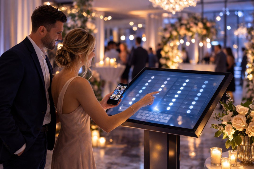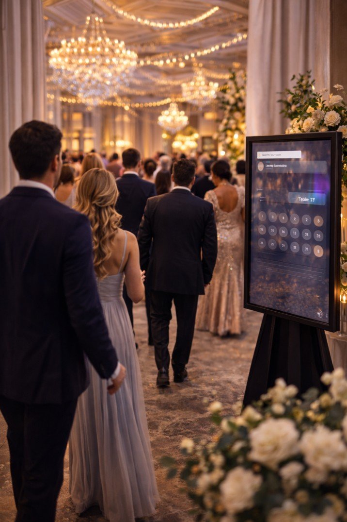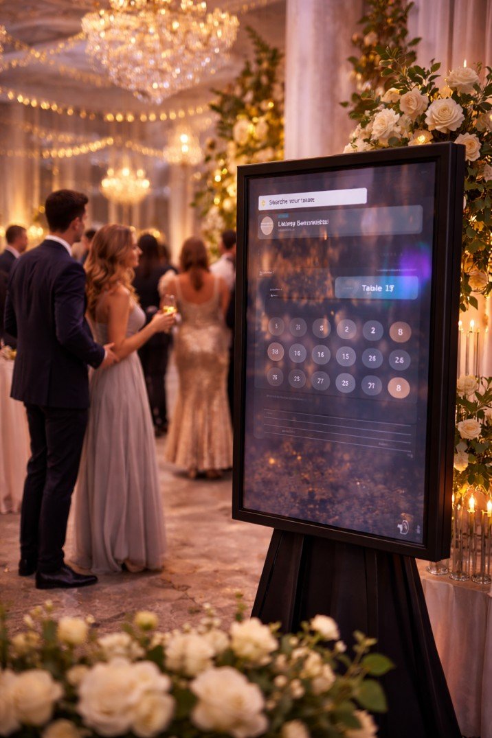 A modern, interactive seating display that helps guests locate their table quickly and effortlessly no confusion, no lines, no stress.
