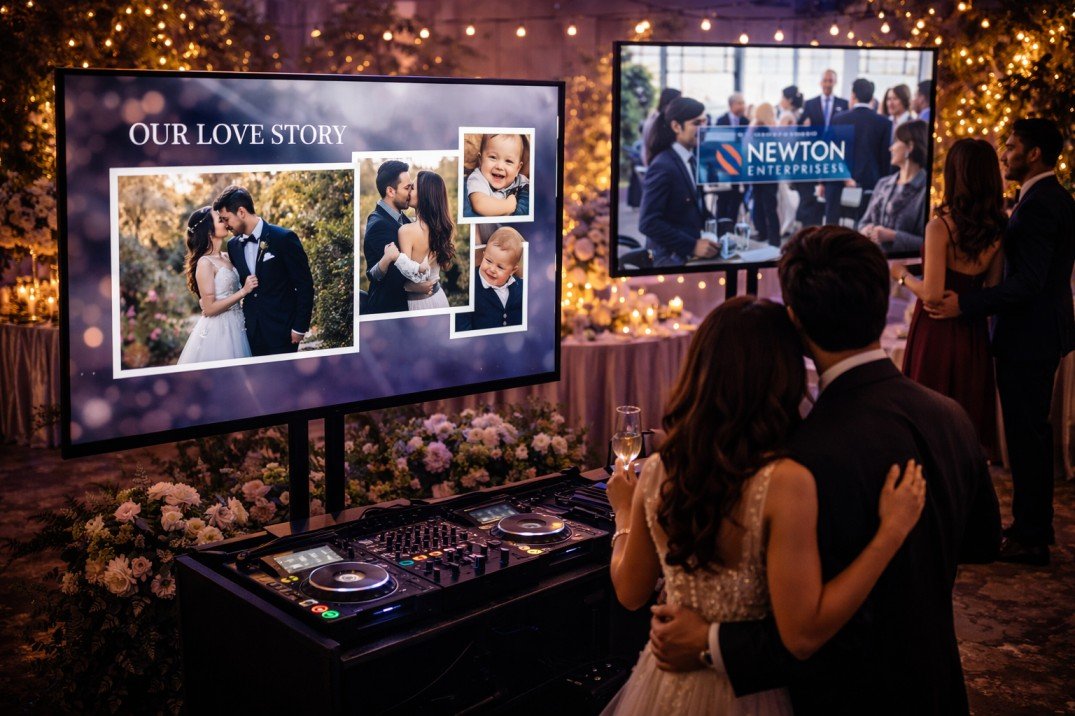 Whether placed near the DJ booth, entrance area, or around the venue, our high-definition displays integrate seamlessly into your event design while adding a modern, polished touch.