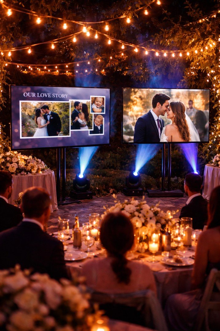 For weddings, showcase your love story, childhood photos, or a same-day edit.