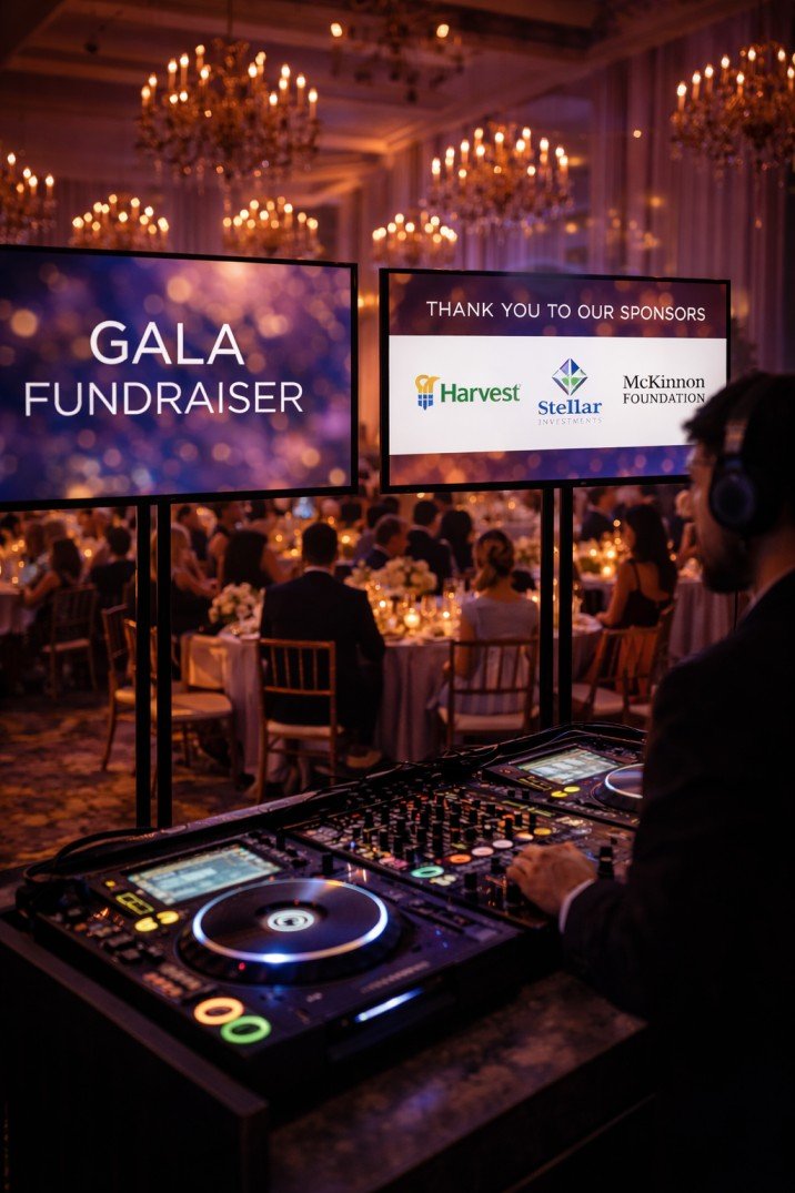 We work with you in advance to prepare slideshows, logo loops, welcome messages, video presentations, or live event highlights. Our team handles setup, formatting, and real-time control so everything runs smoothly.